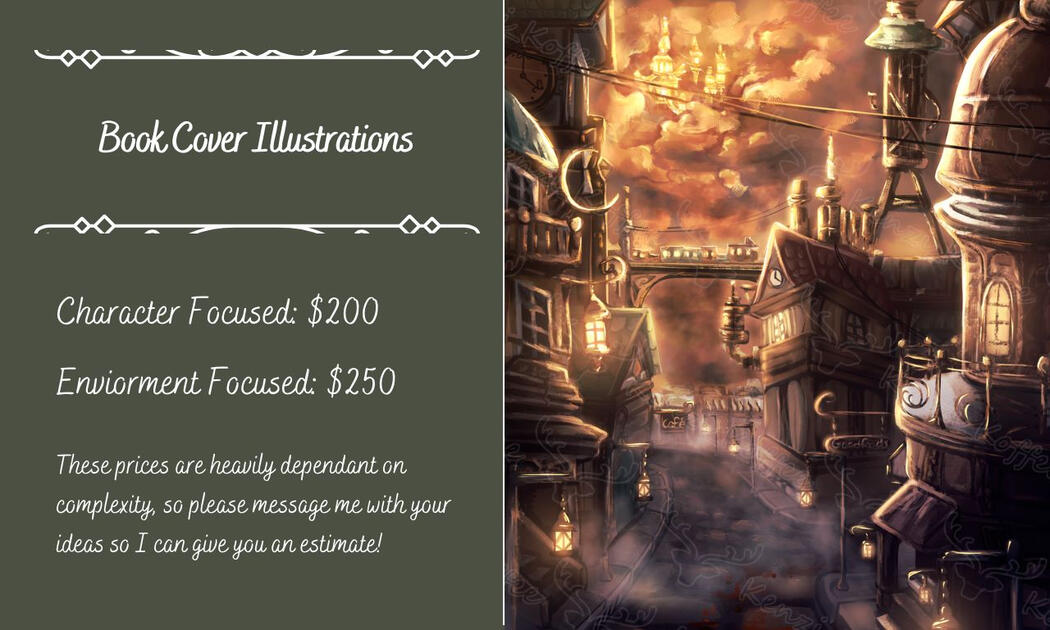 Hello there! I'm Kenzi, a (primarily) digital artist doing freelance work such as character commissions, book art, and other projects. I livestream my art process throughout the week on my Twitch channel and am currently in the process of building a discord community focused on creating art and growing as creatives together. Join The Koffee House here!